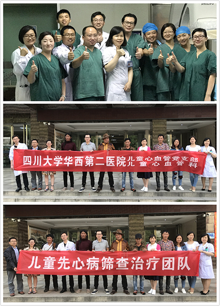 在科室主任华益民教授和支部书记周开宇副教授带领下,儿童先心病筛查治疗团队一行5任于8月23日抵达康定,参加了“第一届甘孜藏族自治州”儿科学术会议并进行学术讲座,同时对数十名经过当地初筛的先心病儿童进行再次心脏超声检查、术前准备及宣教,并于8月25-26日顺利完成了全部筛选出的先心病患儿的心脏介入手术。在各级政府、社会各界的支持下,让这份承诺与担当永存溜溜城并不断延续,让四川大学华西第二医院及甘孜州人民医院的这份大爱能够庇护更多孩子的美丽人生!